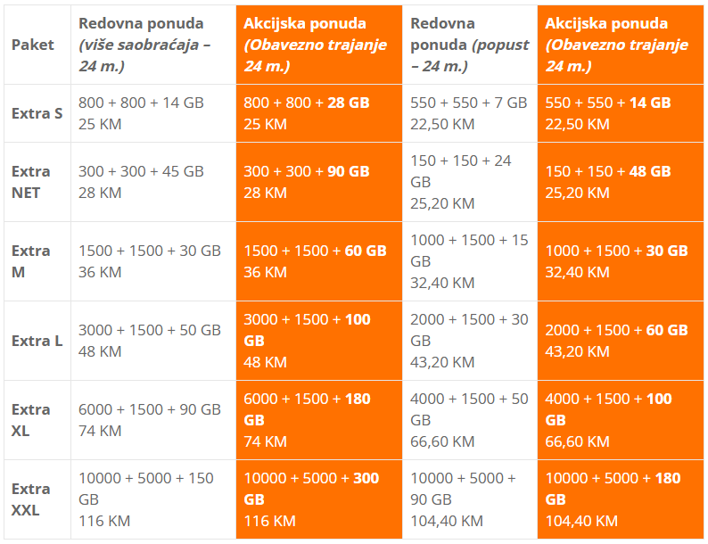 - Postojeći postpaid, kombinovani i prepaid korisnici koji zaključuju novi ugovoreni odnos na Extra paketima izuzev Extra XS i Extra Premium paketa,