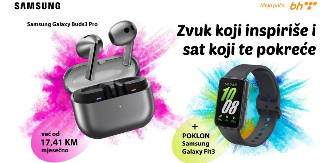 Uđi u svijet vrhunskog zvuka sa potpuno novim Samsung Galaxy Buds3 slušalicama! Doživi kristalno jasan audio, prilagodljivu ANC tehnologiju i udobnost koja prati svaki tvoj korak. Posebna ponuda! Uz kupovinu Galaxy Buds3 slušalica, na poklon dobijaš Galaxy Fit3 – elegantan i praktičan pametni tracker koji ti pomaže da ostaneš aktivan i u balansu tokom celog dana. Superioran zvuk + pametan stil = savršen duo. Ne propusti ovu ograničenu ponudu! Klikni i obezbedi svoj set: https://promo.bhtelecom.ba/GalaxyBuds3